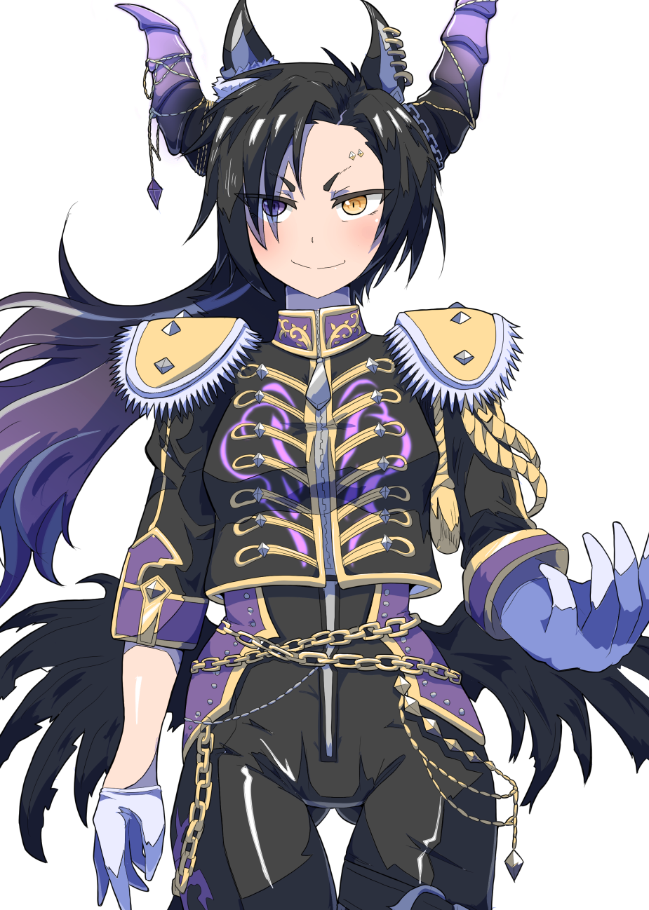 1boy1girlanimal earsblack hairblack jacketblack pantsbrown eyesclosed mouthcowboy shoteyebrow piercingface piercingfloating hairglovesgluteal foldgradient hairhalf glovesheterochromiahornshorse earsjacketlong hairmulticolored hairpantspiercingpurple eyespurple hairshort eyebrowssimple backgroundsmilesolothick eyebrowsthigh gapv-shaped eyebrowsvery long hairwhite backgroundwhite gloves