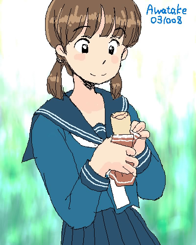 00s1girl2003artist nameblack eyesblushbrown hairdatedfemale focusfoodlow twintailsschool uniformserafukushort twintailsskirtsmilesolotwintails