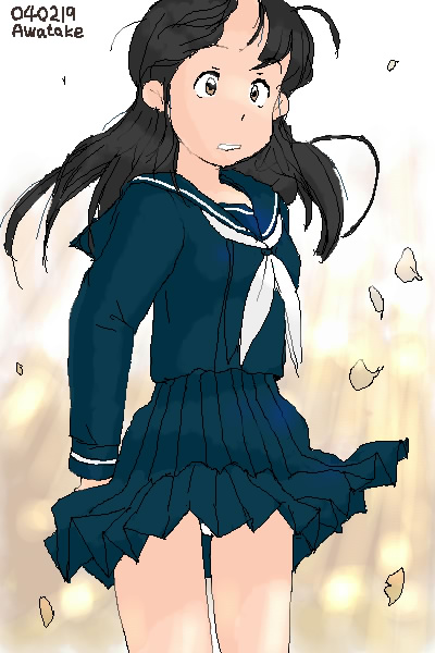 00s1girl2004artist nameblack hairbrown eyesdatedfemale focusleaflong hairpantiespantyshotschool uniformserafukuskirtsolounderwearwhite pantieswindwind lift