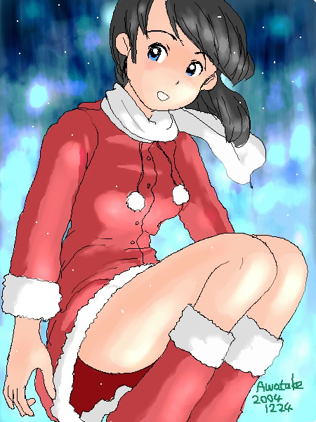 00s1girl2004artist nameblack hairblue eyesdatedfemale focuslooking at viewersanta costumescarfsmilesnowingsolothighhighs