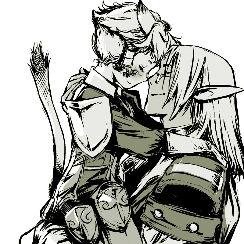 00s1boy1girlanimal earsblushcat girlcoupleelfgreen themeheteromonochromepetitepointy earssmiletail
