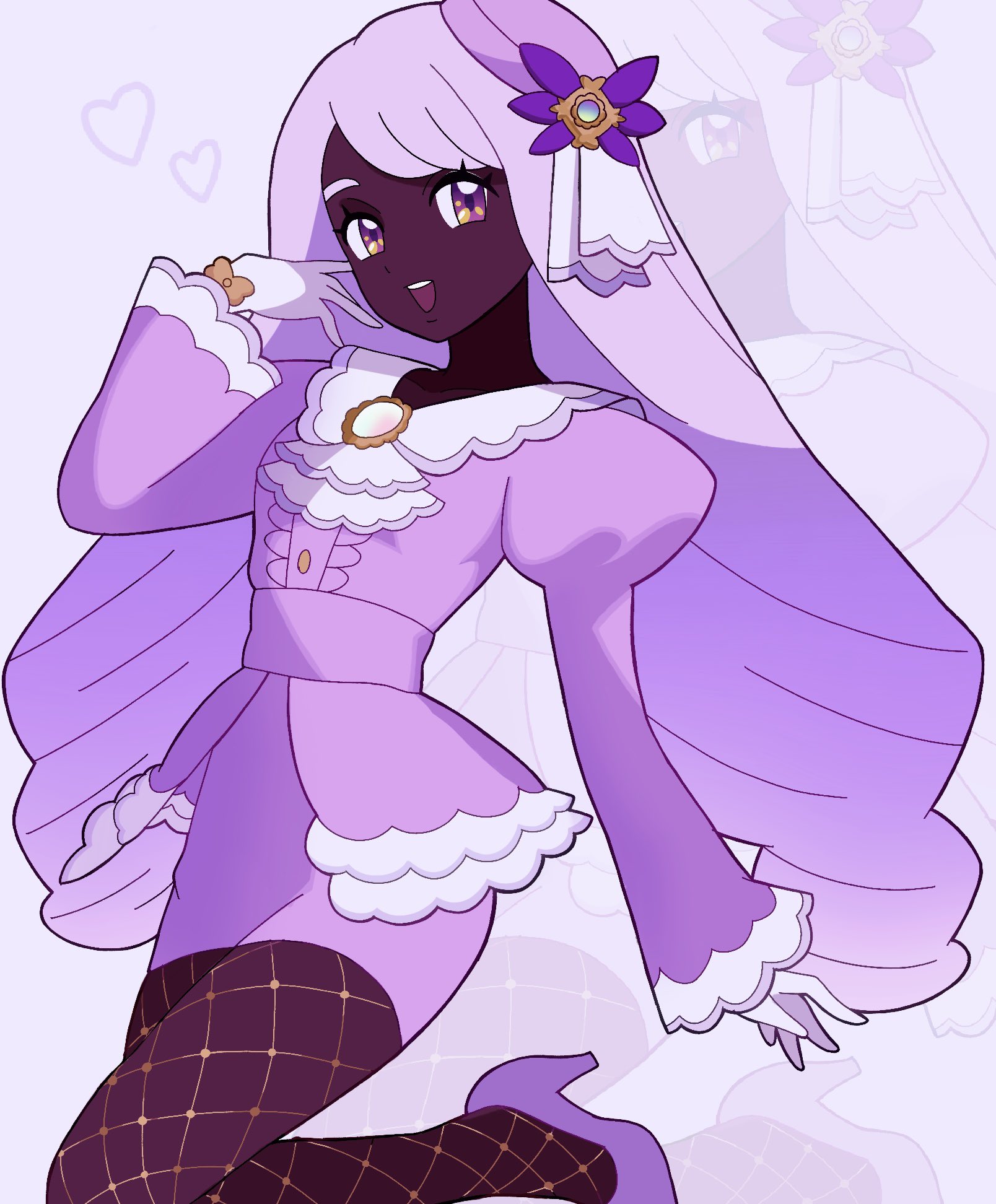 1girlascotdark skindark-skinned femalediamond necklacedressfishfrilled ascotfrillsglowing gemlow drillspirmarinaspurple dresssolovery dark skin