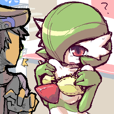 1boy1girlbragen 3 pokemongreen hairgreen themelingerieoekakipokemon (creature)red eyesunderwear