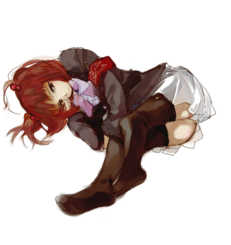 00s1girlarmbandblack eyesfeetfemale focusfrillsfull bodyhair bobbleshair ornamentjacketlegsred hairribbonshort hairsimple backgroundsketchsolothighhighstwintailstwo side upzettai ryouiki