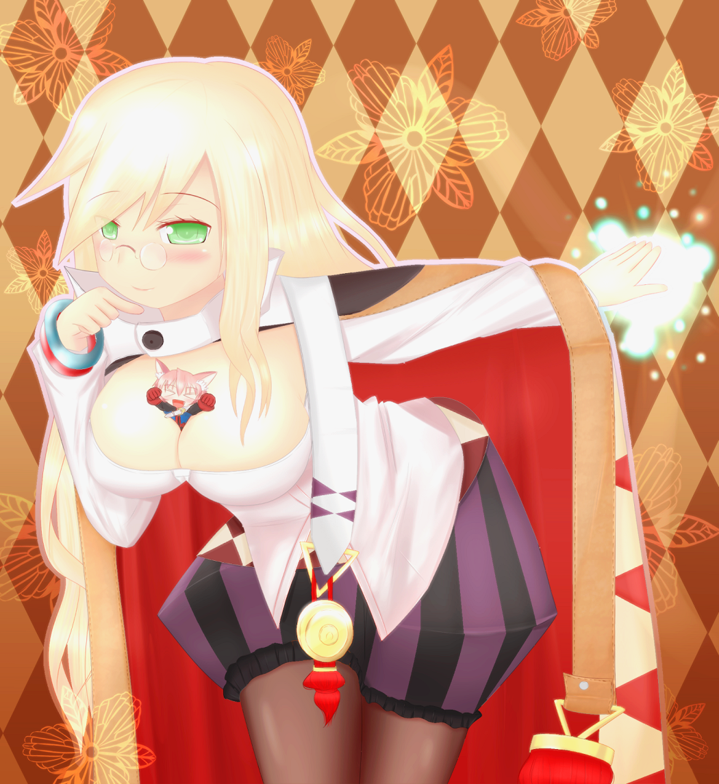 1boy2girlsanimal earsblonde hairbreastscat earscleavageclosed eyesgreen eyesmultiple girlspantyhosepink hair