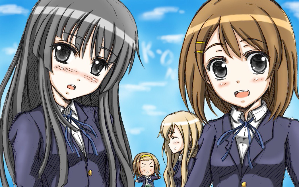 00s4girlsblack hairblunt bangsblushbrown hairhime cutho-kago tea timelong hairmultiple girlsschool uniform