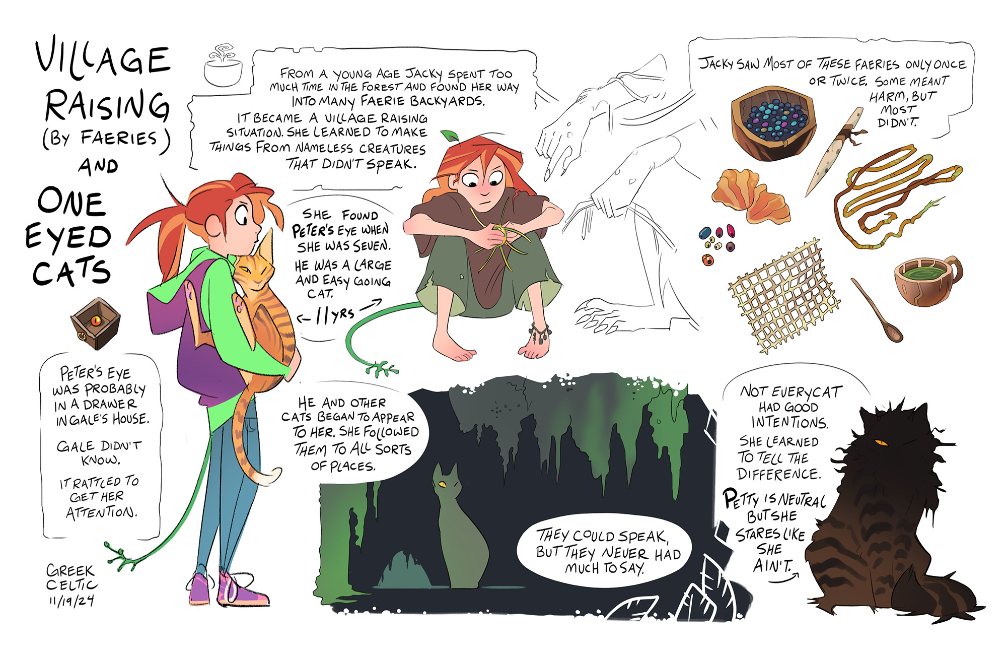 1girlaged downbarefootblue pantsbrown shirtcatdatedenglish textfull bodygreekcelticgreen hoodiegreen pantshoodhoodiejacky (greekceltic)medium hairmultiple personaorange hairpantsponytailpurple hoodiepurple shoesshirtshoessignaturesimple backgroundsittingtail