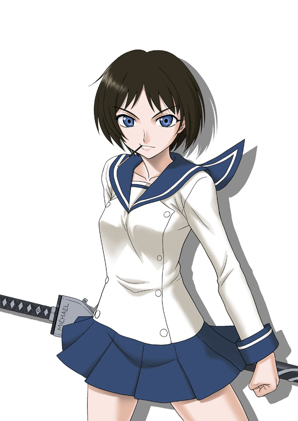 takenashi eri, tohno akiha, tsukihime, jpeg artifacts, 00s, 1girl, black eyes, black hair, black socks, blush, female focus, hairband, kneehighs, miniskirt, plaid clothes, plaid skirt, skirt, socks, solo