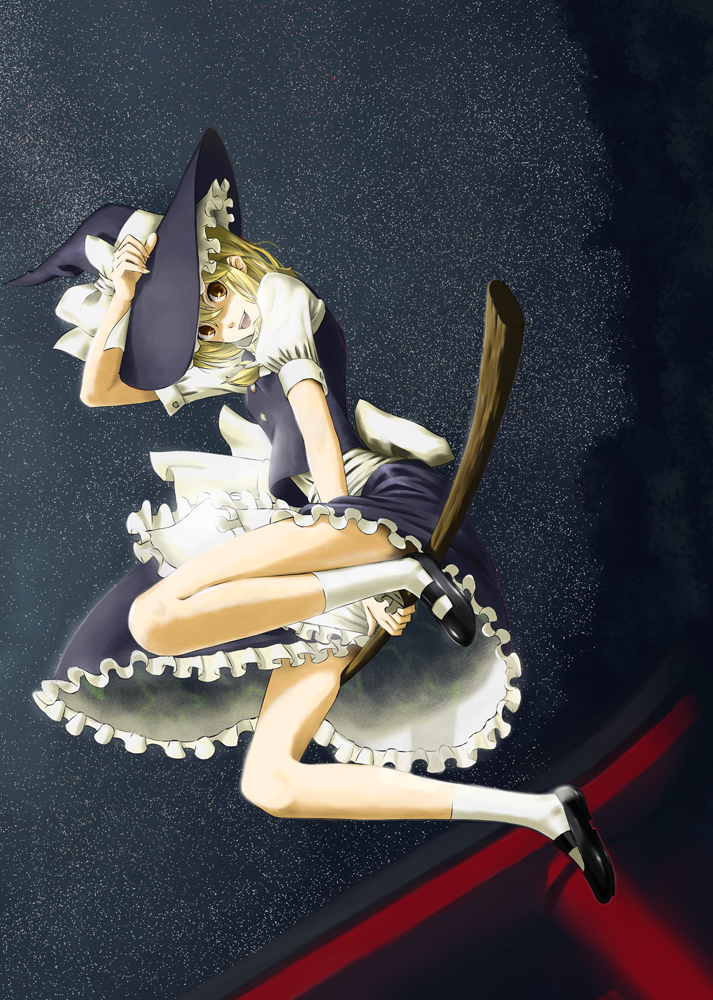 1girlblonde hairbroomfemale focushatnightskysolostar (sky)star (symbol)starry skytoriiwitchwitch hatyellow eyes