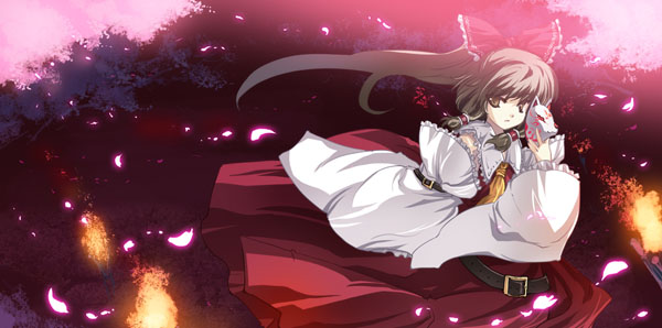 1girlascotbeltbrown eyesbrown hairbucklecherry blossomsdetached sleevesfemale focusfox maskholdinglong sleeveslooking at viewermaskoutdoorspetalsplantribbon trimribbon-trimmed sleevessolotreewind