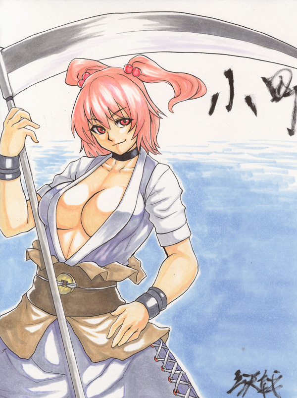 kobayashi jin, tsukamoto yakumo, school rumble, colorized, 00s, 1girl, black hair, blush, comic, female focus, looking at viewer, red eyes, school uniform, smile, solo