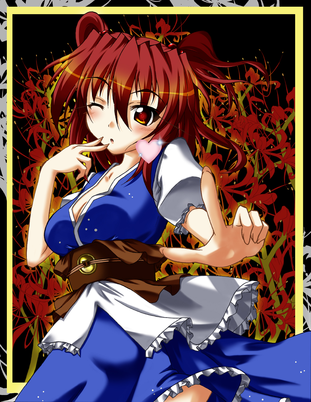 teruru100, minerva (kaminomi), kami nomi zo shiru sekai, commentary request, 1girl, blue hair, blunt bangs, blush, covering own mouth, hair ribbon, hands up, jacket, long hair, long sleeves, looking at viewer, parted lips, raised eyebrows, red eyes, red jacket, ribbon, school uniform, sidelocks, simple background, sleeves past fingers, sleeves past wrists, solo, upper body, white background, white ribbon
