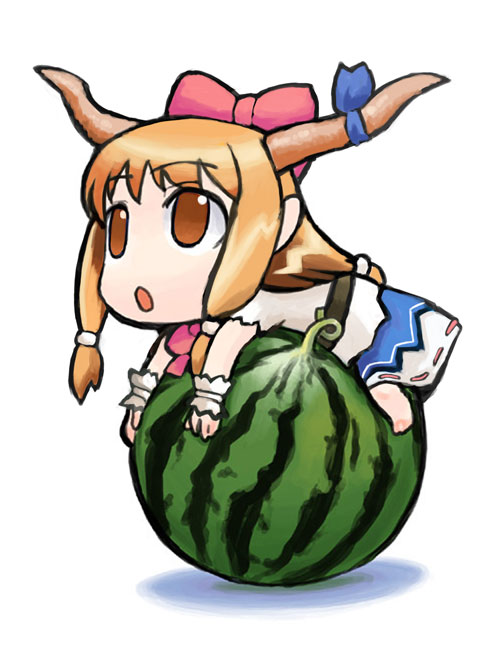 1girlchibifemale focusfoodfruitlong hairlow-tied long hairname connectionobject namesakesolowatermelon