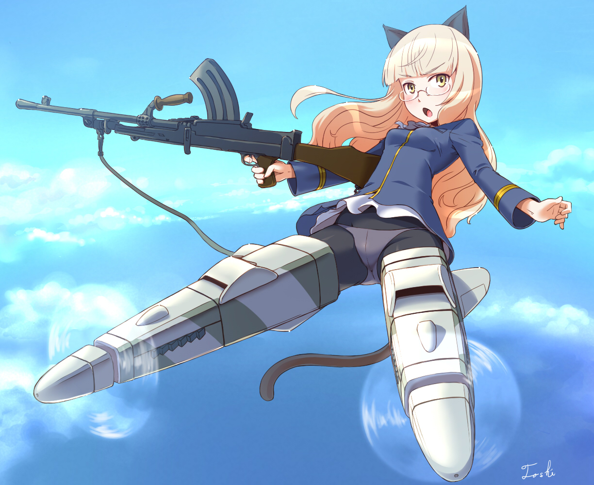 00s1girlanimal earsblonde hairblushbren lmgclouddayfemale focusflyingglassesgunlight machine gunlong hairmachine gunpantiespanties under pantyhosepantyhoserifleskysolosquad automatic weaponstriker unittailunderwearweaponyellow eyes