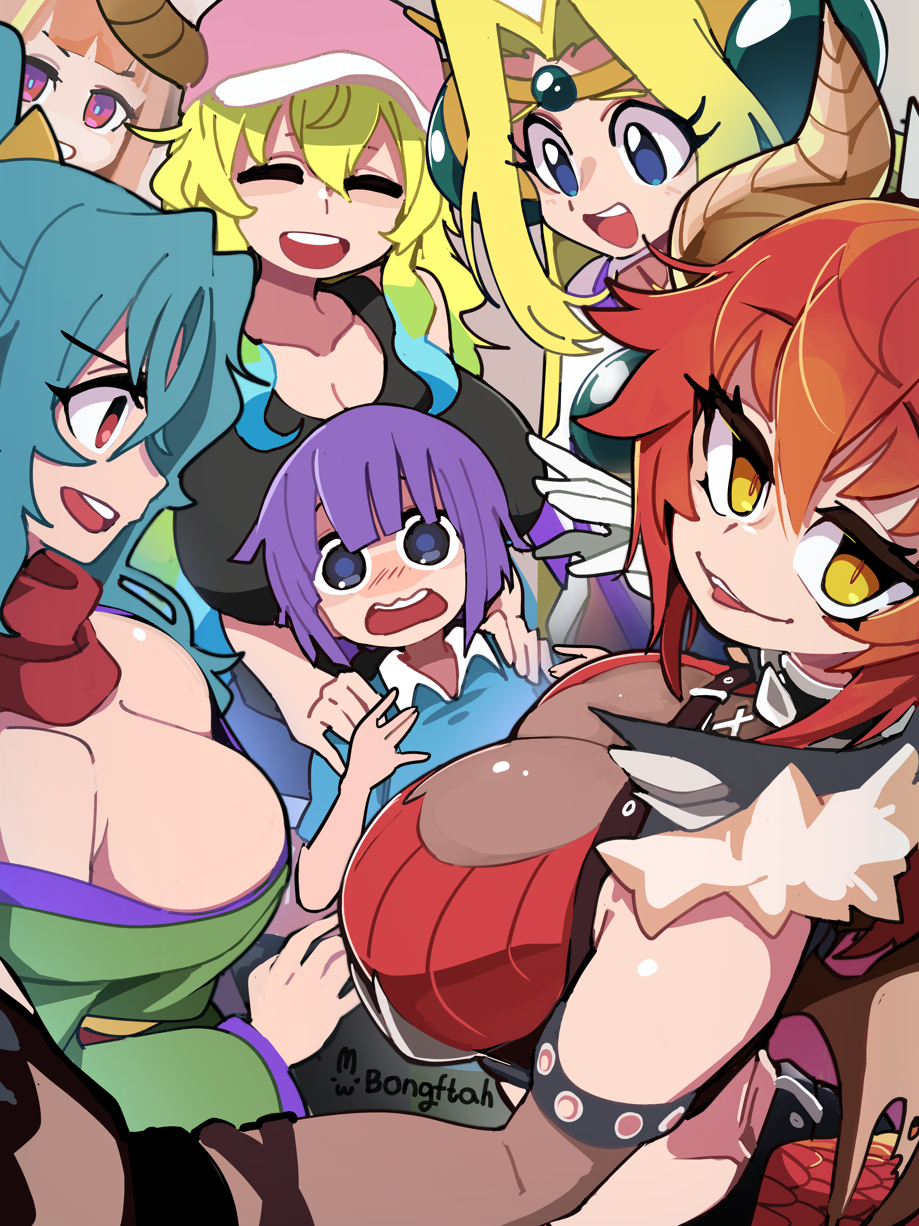 1boy5girlsartist nameblack tank topblonde hairblue eyesblue hairblue shortsblunt bangsbreastscleavagecollarbonecrossovercurtained hairdragon girldragon hornsdragon tailgreen hairgreen kimonogrinhair between eyeshair ornamenthands on another's shouldershathornshorns through headwearjapanese clotheskimonolarge breastslong hairlong sleeveslooking at anotherlooking at viewerlooking backmulticolored hairmultiple crossovermultiple girlsopen mouthpink hatpurple hairred hairshirtshort shortsshort sleevesshortssmilestreaked hairsurroundedtailtank topteethtrait connectionupper teeth onlyvirtual youtuberyellow eyes