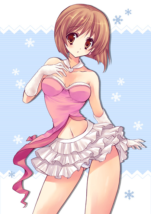 00s1girlbreastschokercute & girly (idolmaster)female focusglovesheartminiskirtnavelpantiespantyshotred eyesshort hairskirtsolounderwear