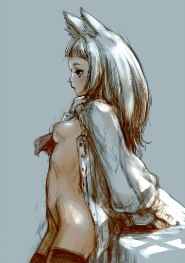 kj (k777), ranma-chan, saotome ranma, ranma 1/2, translated, 1girl, braid, braided ponytail, breasts, female focus, genderswap, genderswap (mtf), nipples, nude, red hair, single braid, solo