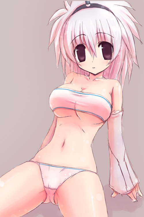 1girlarm supportbandeaubreastscleavageelbow glovesfemale focusgloveshairbandhornskirin (armor)large breastsnarrow waistpantiessingle hornsittingsolostraplesstube topunderboobunderwear