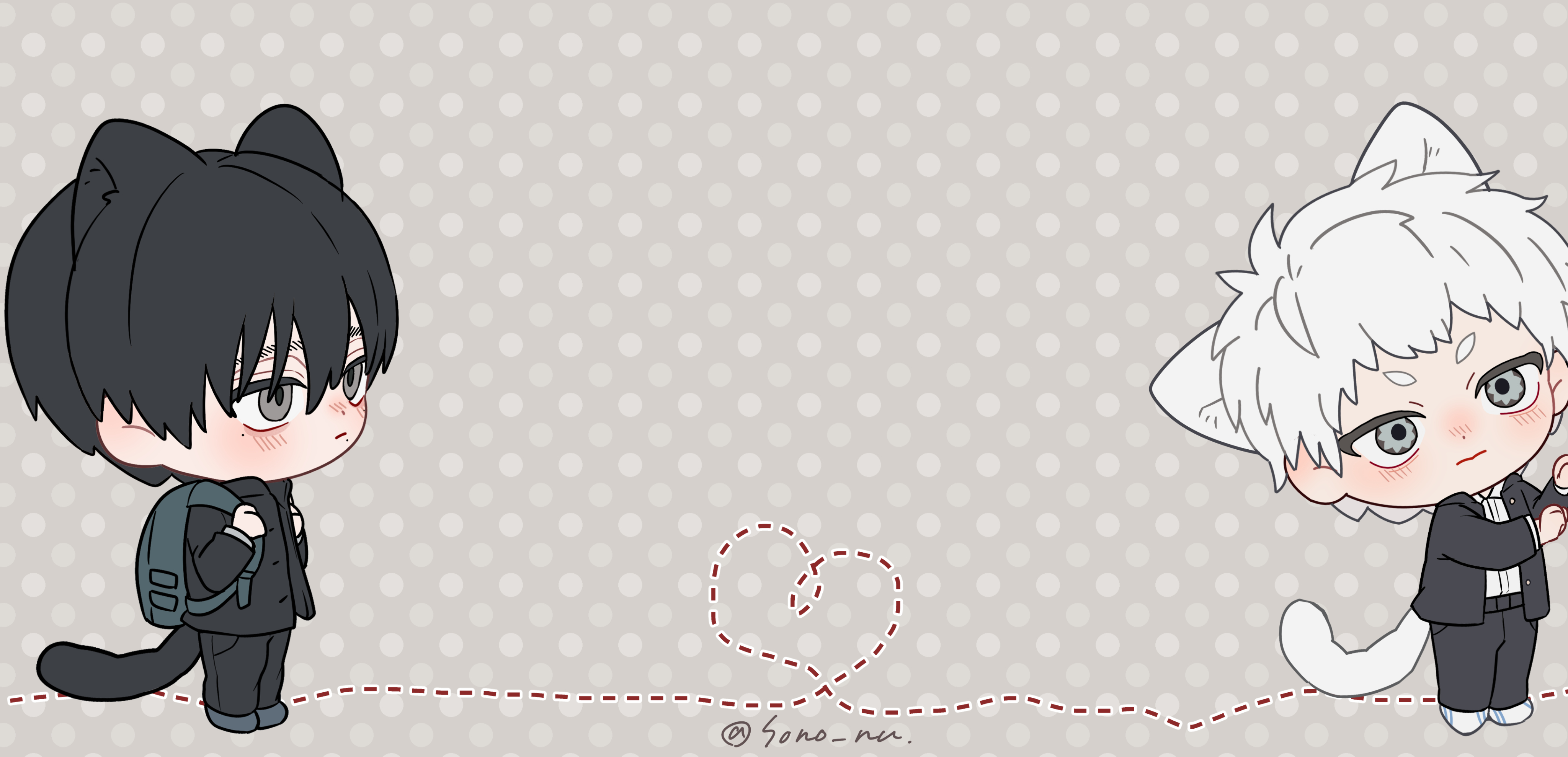 2boysanimal earsblack hairblushchibichibi onlyclosed mouthcollared shirtfull bodygakuranheartjacketmale focusmolemole on cheekmole under eyemole under mouthmultiple boysmultiple molesopen clothesopen jacketpolka dotpolka dot backgroundschool uniformshirtshort hairtailtwitter usernamewhite hairwhite shirt
