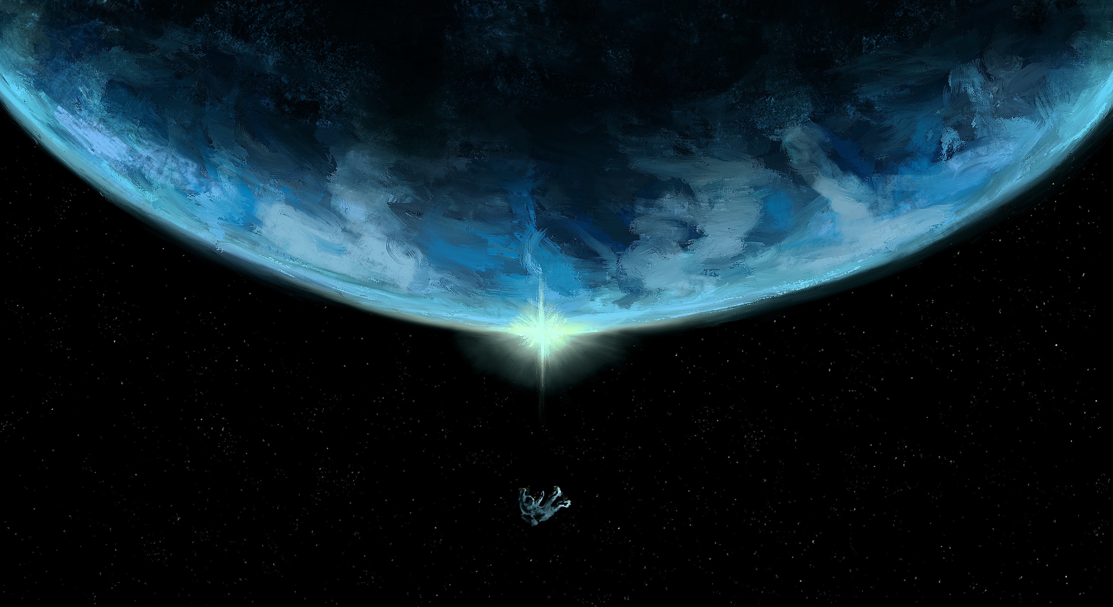 1otherambiguous genderastronautin orbitpainterlyplanetsceneryspacespacesuitstar (sky)sunwide shot
