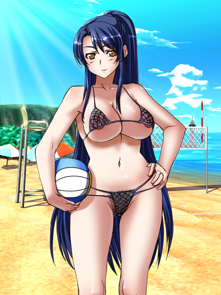 1girlbeachbikinibreastscovered erect nippleshands on own hipslarge breastspubic hairrevealing clothesswimsuit