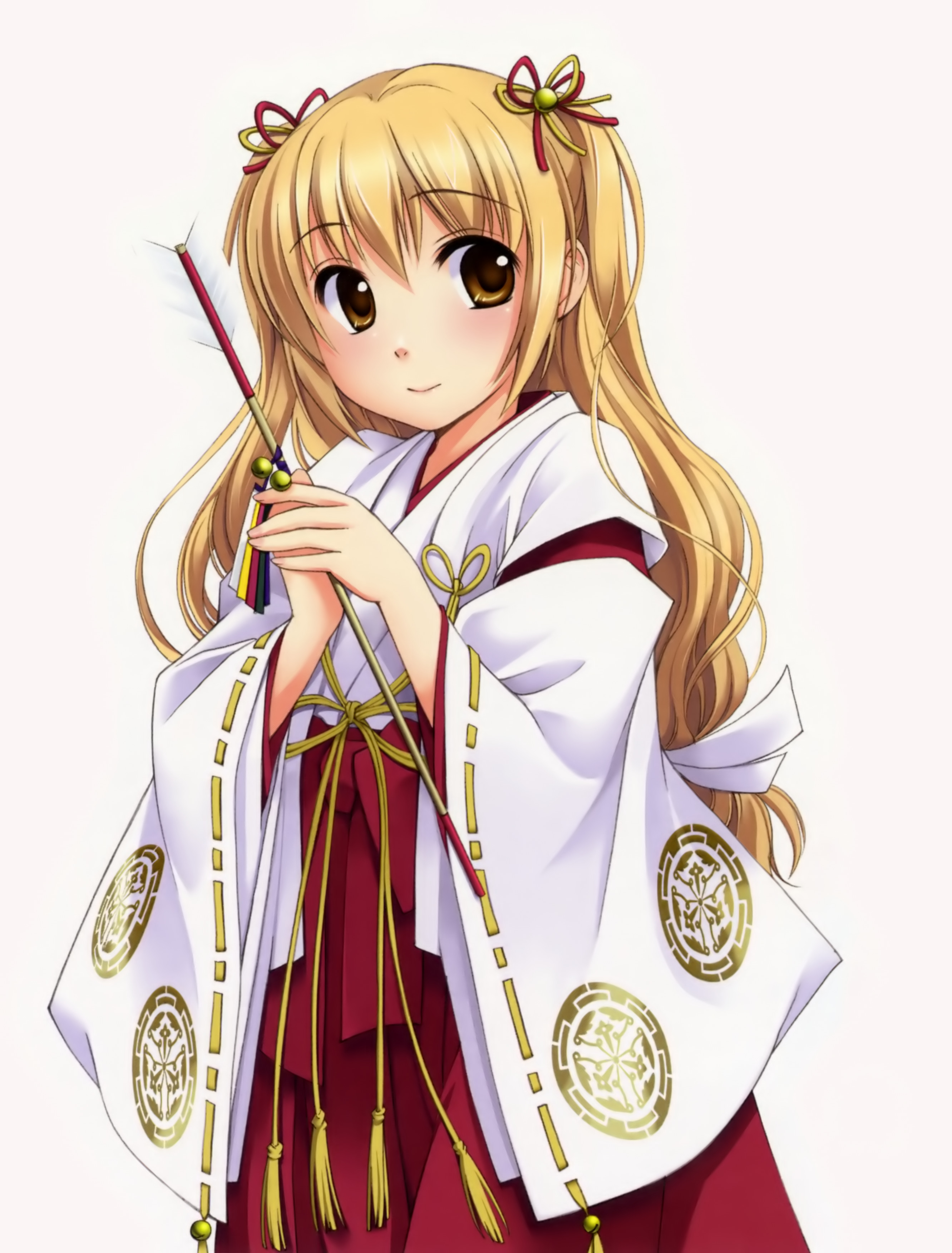 robingi, innocence pain, highres, 2girls, blonde hair, blue hair, fingernails, green eyes, multiple girls, nail (hardware), red eyes, ribbon, scared, school uniform, short hair, smile, twintails