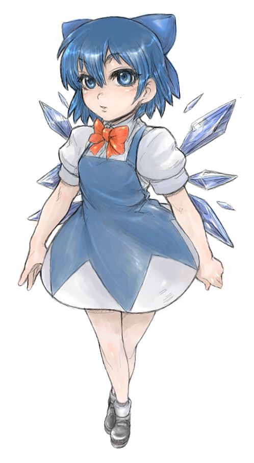 1girlblue eyesblue hairbowdressfemale focusfull bodyhair bowmatching hair/eyesshort hairsimple backgroundsolowhite backgroundwings