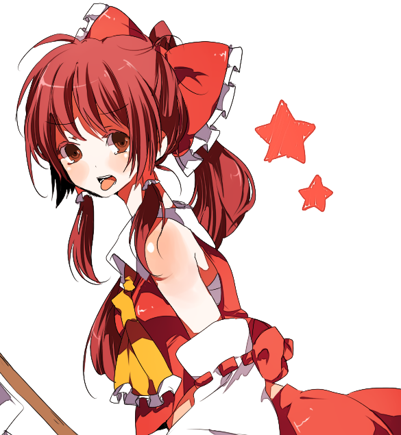 1girlbowbrown eyesbrown hairdetached sleevesfemale focusgoheihair bowjapanese clothesmikoponytailsarashisimple backgroundsolostar (symbol)tonguewhite background