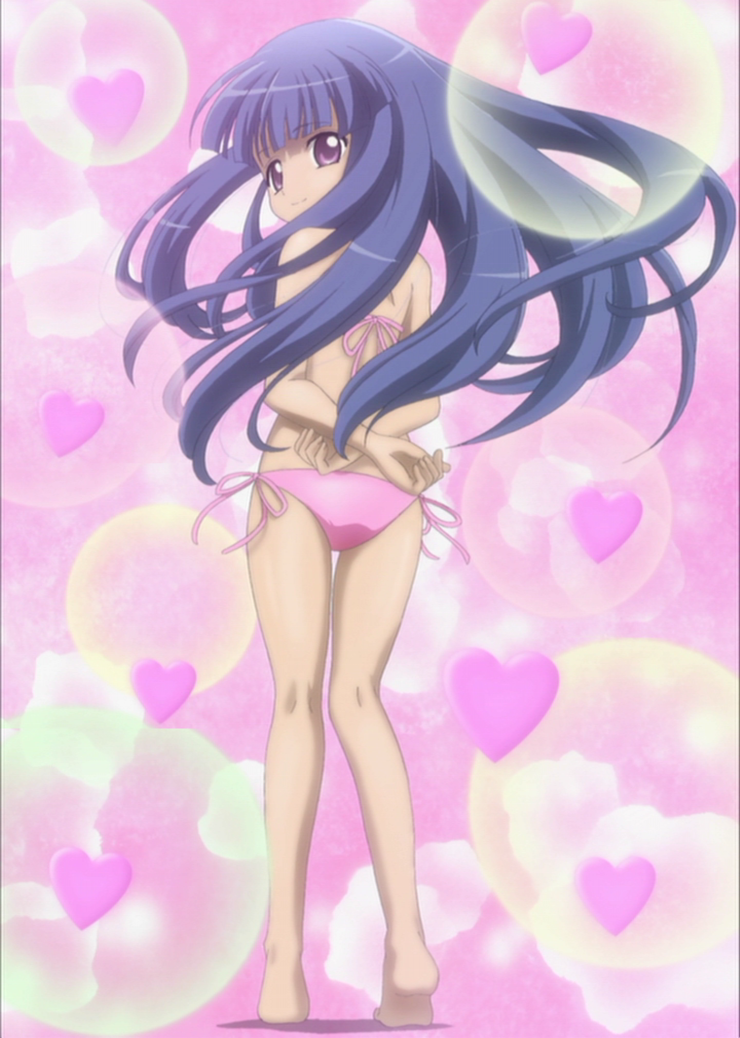 00s1girlassbarefootbikiniblue hairfeetfemale focuslolilong hairlooking backpink bikinipurple eyesside-tie bikini bottomsoloswimsuitvery long hair