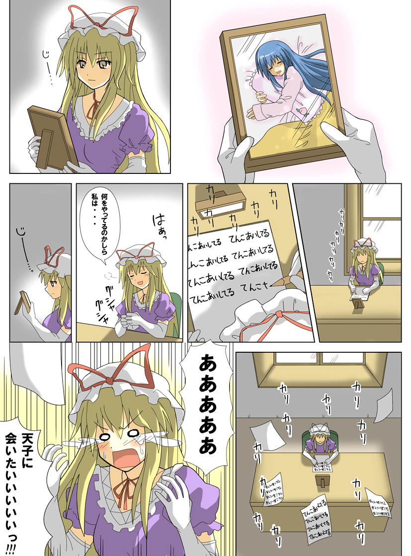 1girlblonde hairblue haircomicelbow glovesfemale focusfoodfruitgloveshathugging objectpeachpillowpillow hugsleepingyellow eyes