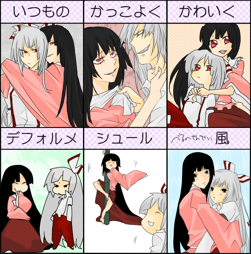 2girlsblack hairchartfemale focuslong hairmultiple expressionsmultiple girlsmultiple viewsred eyeswhite hairyukkuri shiteitte ne