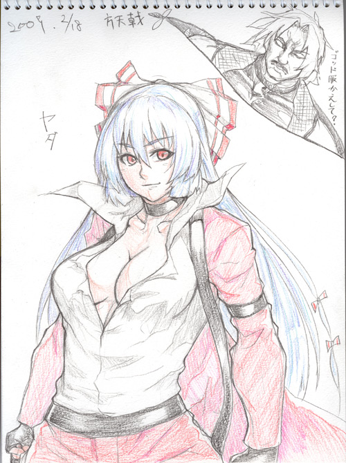 1boy1girlbreastscleavagecosplaygap (touhou)open clothesopen shirtrugal bernstein (cosplay)shirtsketch
