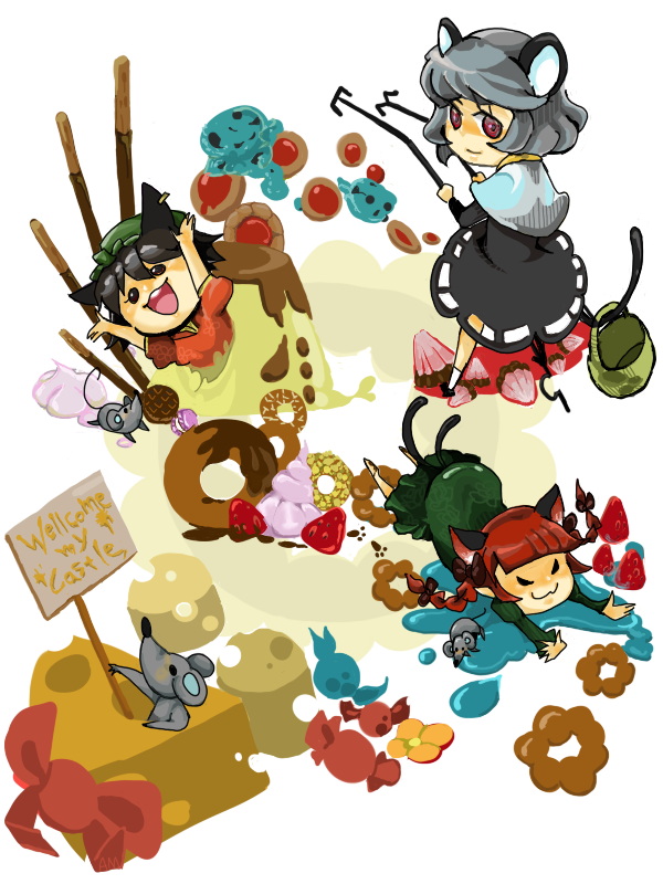 aozora market, flandre scarlet, princess wriggle, wriggle nightbug, touhou, 2girls, antennae, bare shoulders, blonde hair, blue eyes, bug, butterfly, butterfly hair ornament, cape, dancing, dress, female focus, foreshortening, from above, gradient background, green hair, hair ornament, hat, holding hands, insect, mob cap, multicolored hair, multiple girls, red eyes, short hair, side ponytail, tiara, white background, wings