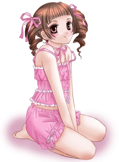 00s1girlbabydollbarefootbrown eyesbrown hairdrill hairfemale focuslingerienegligeesolostrap sliptwintailsunderwear