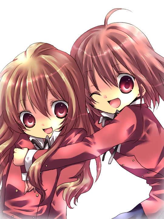 00s2girlsahogebrown eyesbrown hairhuglong hairmultiple girlsred eyesred hairschool uniformshort hairwink