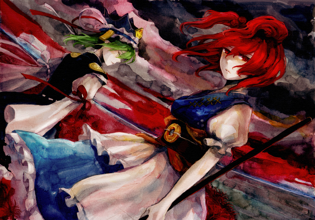 akihara ryou, ayukawa koto, iris mysteria!, 1girl, ahoge, blue kimono, character name, chibi, flower, frilled kimono, frills, hair flower, hair ornament, holding, holding umbrella, japanese clothes, kimono, long braid, oil-paper umbrella, okobo, outstretched arm, pink hair, platform sandals, red umbrella, sandals, scarf, smile, socks, solo, standing, standing on one leg, umbrella, white scarf, white socks, yellow eyes