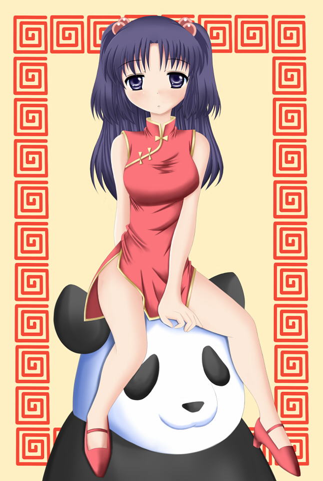 00sblue eyesblue hairchina dresschinese clothesdresshair bobbleshair ornamentlong hairpandasolotwintailstwo side up