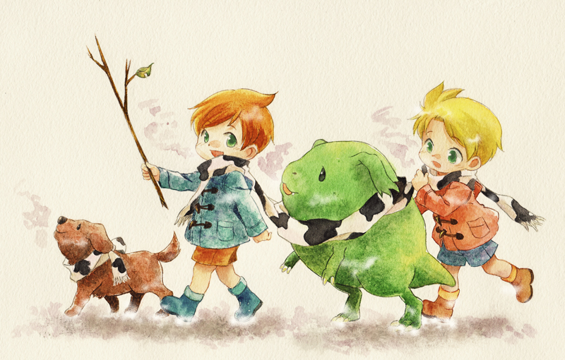 2boysblonde hairbrown haircoatdoggreen eyesmale focusmultiple boysquiffscarfsiblingssmiletwins