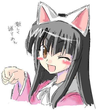 :d1girlanimal earsblack hairblush stickersbrown eyescat earscat girlfemale focuskemonomimi modeoekakiopen mouthpaw posesmilesolowhite backgroundwink