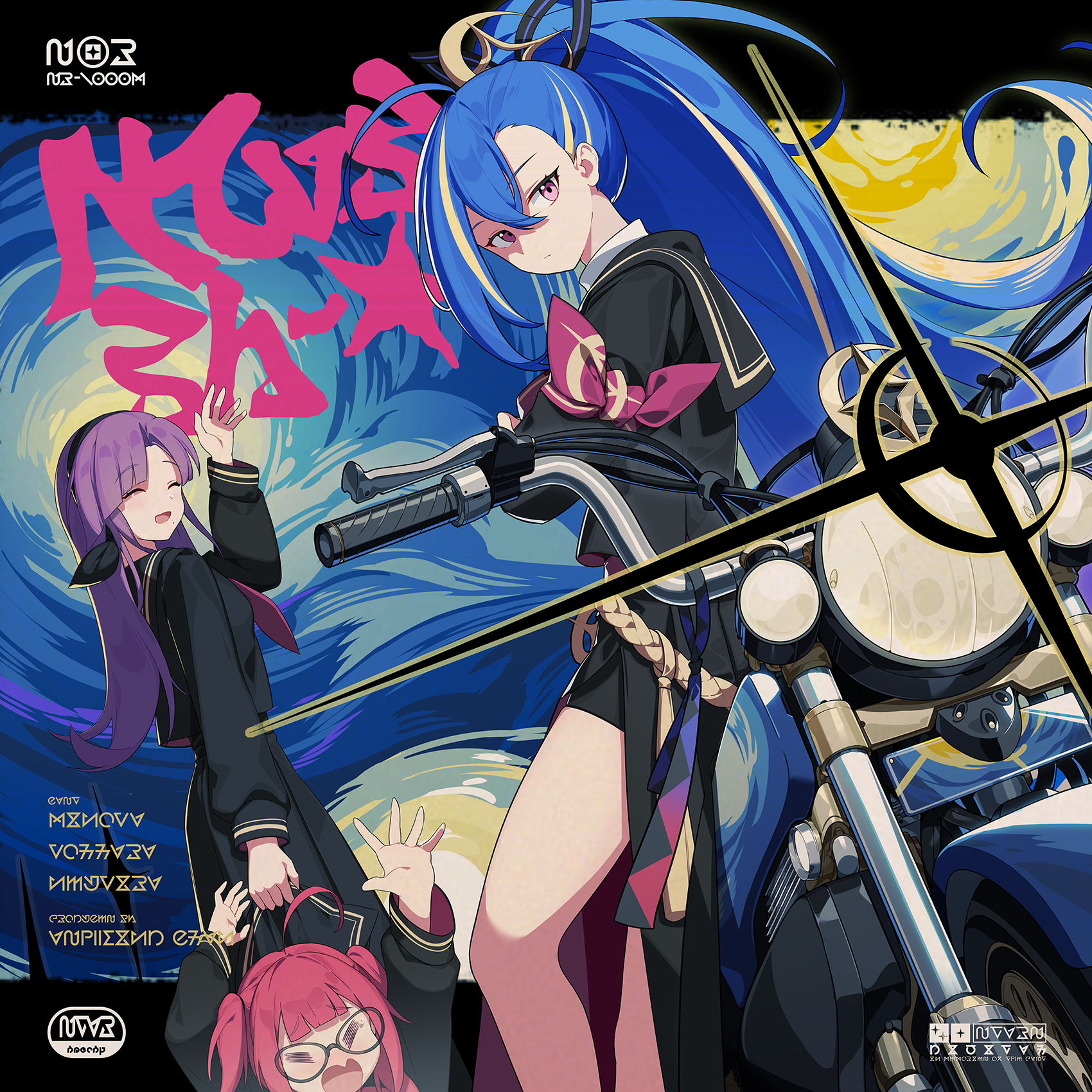 :d1boy3girlsahogealbum coverashwind clan (stella sora)bike shortsbike shorts under skirtblack hairbandblack sailor collarblack serafukublack shirtblack shortsblack skirtblonde hairblue hairclosed eyescoverdraggingexpressionlessflipped hairhair between eyeshairbandleaningleaning against motorcyclelong hairlong skirtlong sleeveslooking at viewermotor vehiclemotorcyclemulticolored hairmultiple girlsneuvira (stella sora)official alternate costumeopen mouthpleated skirtpurple eyespurple hairraised inner eyebrowssailor collarschool uniformserafukushirtshortsshorts under skirtside slitskirtsmilestandingstreaked hairtwo side upvery long hair