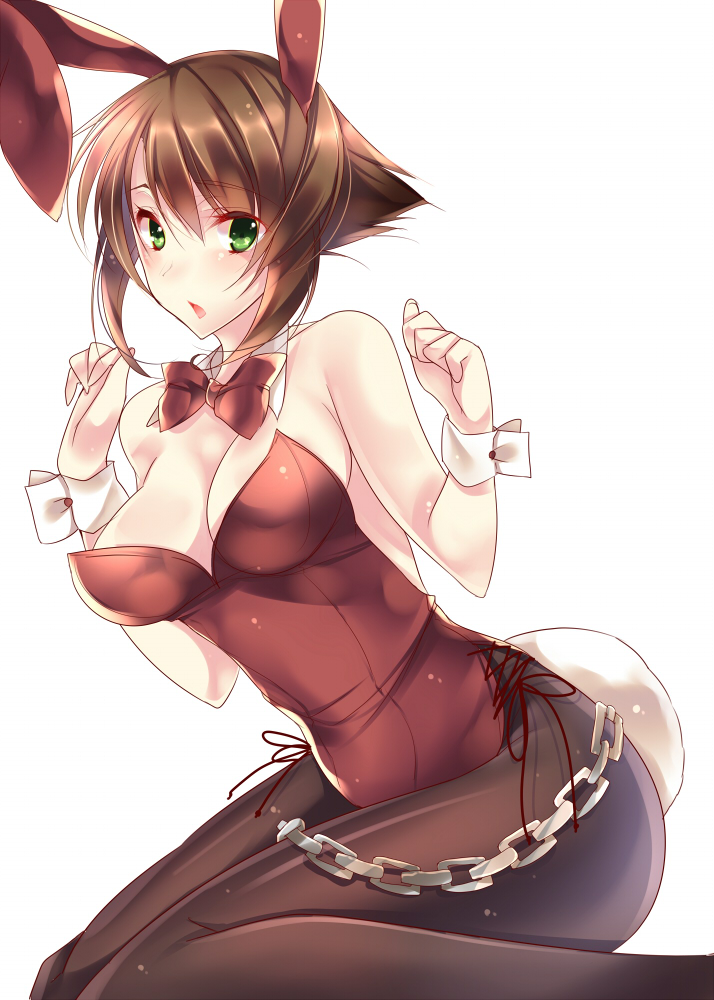 animal earsbrown hairbunny earsbunny suitchainscleavagefake animal earsfemaleFlag for Deletiongreen eyesshirt cuffsshort hairsolo