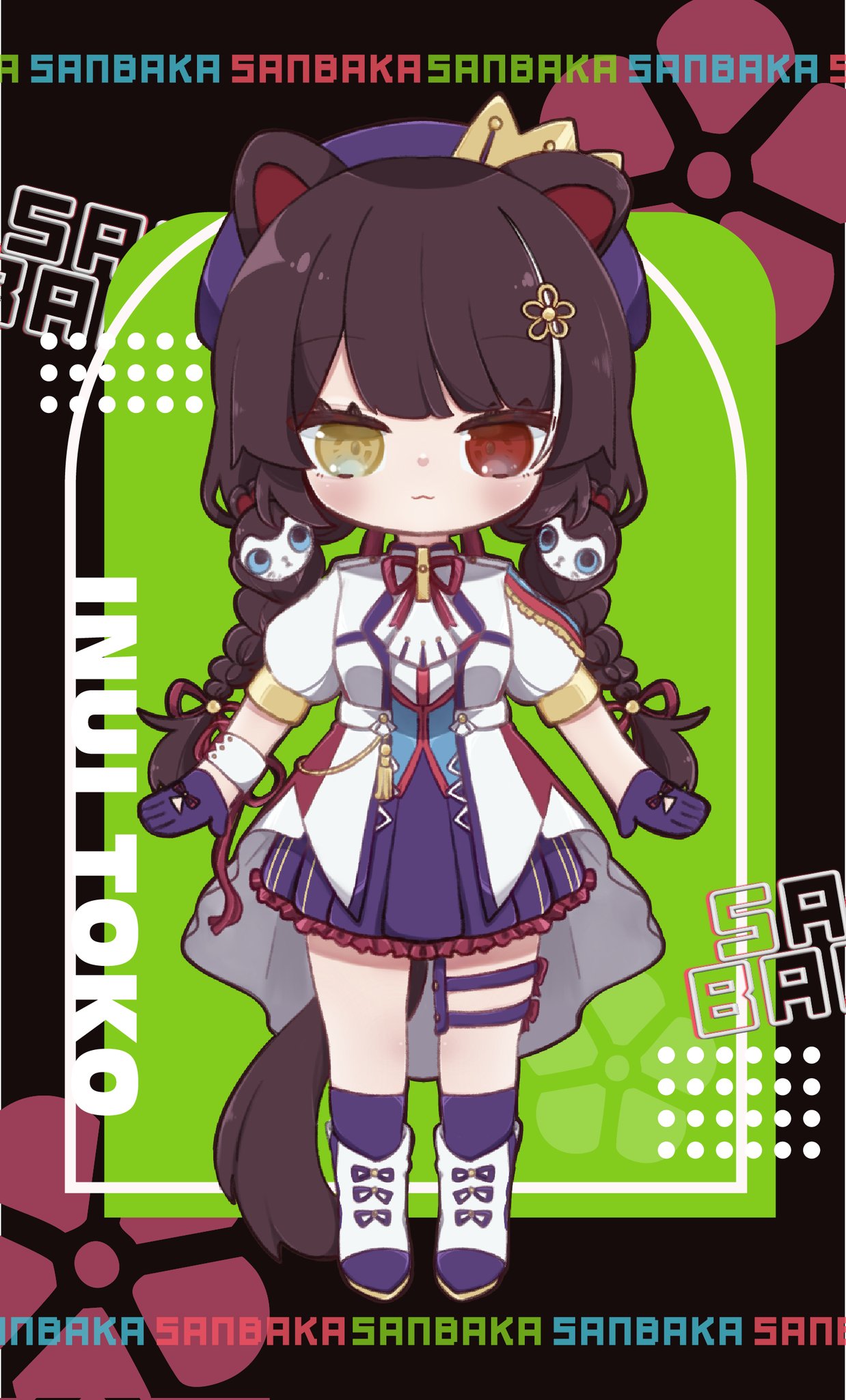 :31girlanimal earsanimal hair ornamentankle bootsberetblack backgroundblushbootsbraidbrown hairbrown tailcharacter nameclosed mouthcrown hat ornamentdeformeddog earsdog girldog tailflowerfrilled skirtfrillsfull bodyglovesgreen backgroundgroup namehair flowerhair ornamenthair ribbonhatheterochromiaidol clothesjacketlong hairlooking at viewerlow twin braidsminiskirtmulticolored hairnanasiakuruneck ribbonpleated skirtpuffy short sleevespuffy sleevespurple glovespurple hatpurple ribbonpurple skirtpurple socksred eyesribbonsanbaka anniversary outfitshort sleevessingle wrist cuffskirtsockssolostraight-onstreaked hairtailtasselthigh straptwin braidstwo-tone hairvery long hairvirtual youtuberwhite bootswhite hairwhite jacketwhite wrist cuffswrist cuffswrist ribbonyellow eyes