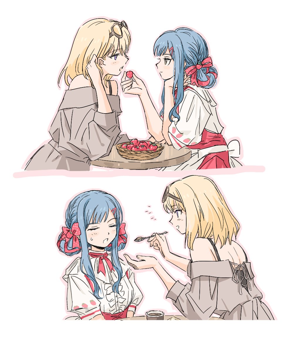 ito ryo, mifuyu (princess connect!), mifuyu (summer) (princess connect!), princess connect!, commentary request, translation request, 1girl, :d, = =, black hairband, blue eyes, c:, closed mouth, crossed bandaids, damage numbers, hairband, long hair, monster, open mouth, ponytail, purple hair, sidelocks, smile, sparkle, v-shaped eyebrows, very long hair