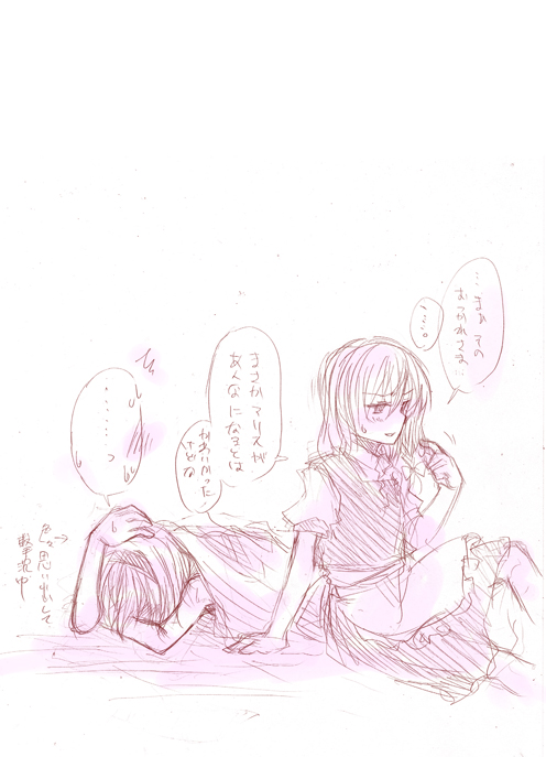 yellow (artist), flandre (kaibutsu oujo), kaibutsu oujo, 00s, 1girl, android, blonde hair, female focus, full body, maid, plant, purple eyes, shoes, solo, standing, tree, white background