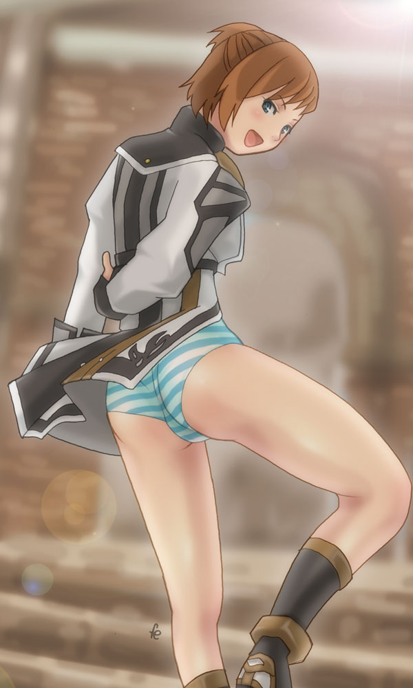 00s1girlassblue eyesblushbrown haircoatfemale focushumelong sleevesoutdoorspantiespantyshotshort hairsolostriped clothesstriped pantiesunderwear