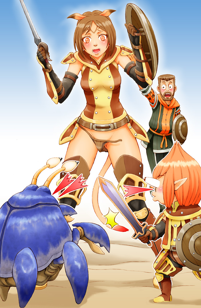 00s1boy1girl2boysanimal earsarmorbeardbloodblushbreastsbrown eyesbrown haircat earscat girlcat tailcrabcrustaceanfacial hairgloveshumemultiple boysnosebleedo3opantiesshieldshort hairswordtailtarutarutorn clothestorn pantiesunderwearwardrobe malfunctionweaponwide-eyed