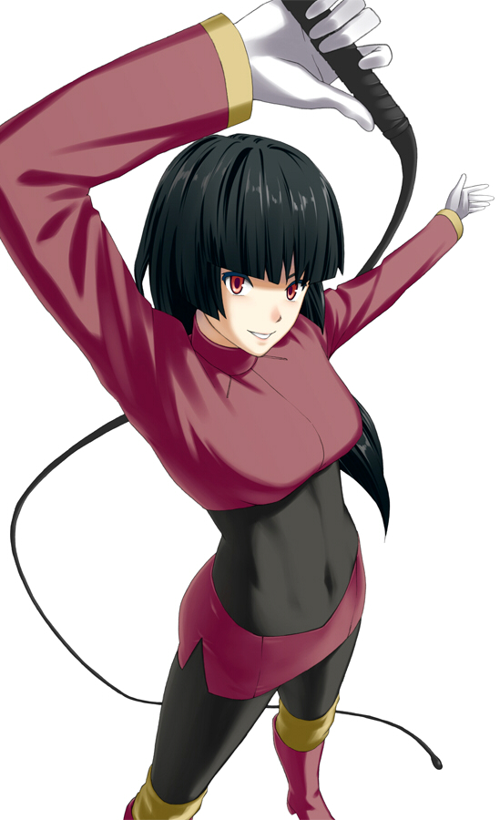 butcha-u, oboro (taimanin asagi), taimanin (series), taimanin asagi, highres, 1girl, breasts, claws, elbow gloves, full body, gloves, large breasts, leotard, ninja, nipples, red eyes, red hair, red leotard, short hair, solo, standing, white background, wide hips