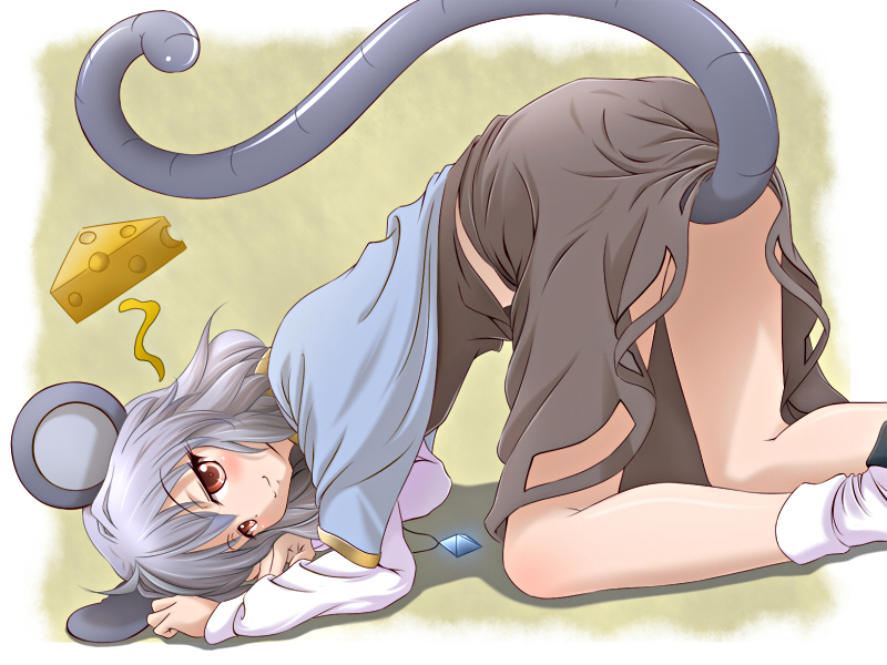 1girlanimal earscheesefemale focusfoodlegsmouse (animal)mouse earsmouse tailred eyesshort hairsolotailtop-down bottom-up