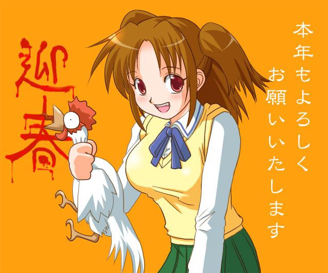 :d00s1girlasphyxiationbirdbreastschickenfangfemale focuskotoyorolarge breastsnew yearopen mouthpleated skirtsimple backgroundskirtsmilesolostrangling