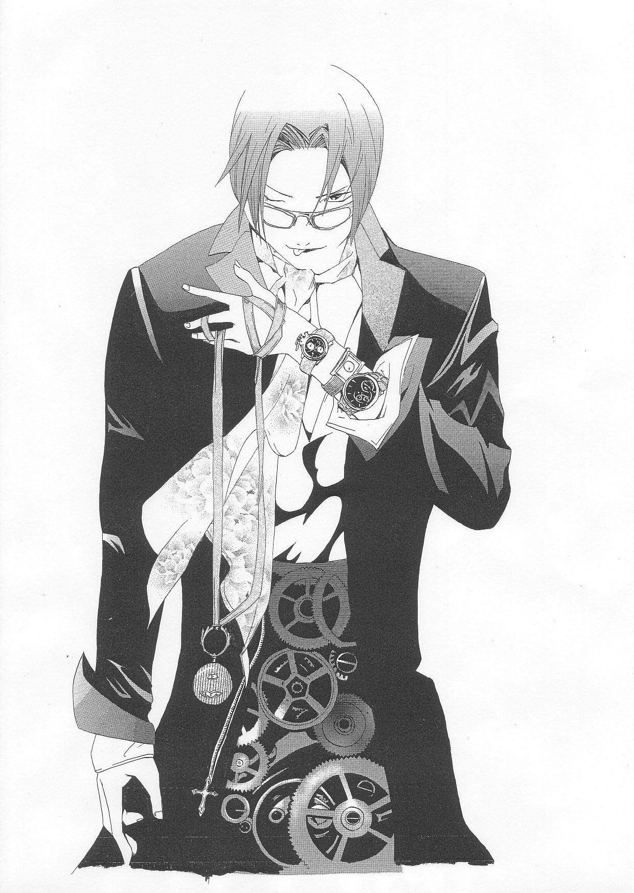 :p00s1boycoatcrossgearsglassesgreyscalemale focusmonochromemonocleone eye closedpocket watchribbonscarfsolotonguetongue outtrench coatv-neckwatchwinkwristwatch